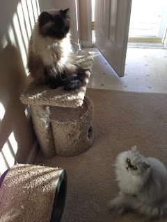 Myst had a litter box problem that made him messy and he had to get a shampoo and hair cut at the vet. He is being given probiotics to settle his stomach and it seems to be working.